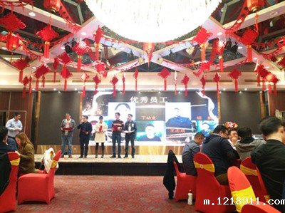 然后活动进入宴会环节。并在宴会期间,将优秀员工表彰环节与幸运抽奖环节穿插举行。首先是在轻松欢快的乐曲声中,公司董事会领导来到每一桌与员工共同举杯,与员工一起分享收获的喜悦,送上新年祝福。优秀员工表彰环节,丁总宣布了2018年的优秀奖评选结果,优秀员工奖由李大娥、胡俊、丁幼龙、王忠成、胡鹏五位分享,优秀班组长则由王洪献与袁蕊获得,公司也对以上优秀代表进行了祝贺与表彰,赢得了全厂员工的热烈掌声和欢呼声。
